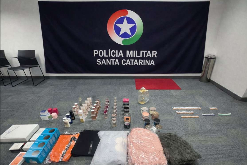 A Polícia Militar apreendeu mercadorias de origem estrangeira na tarde desta terça-feira (30), durante uma abordagem na Rodovia Antônio Heil,